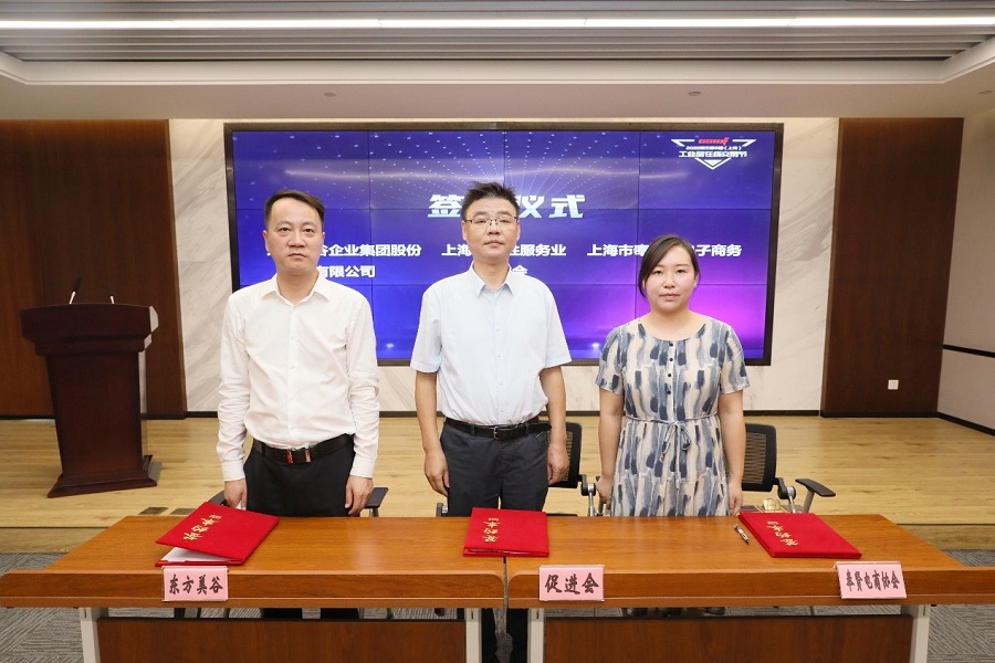 会上,上海生产性服务业促进会王勇常务副秘书长、东方美谷企业集团股份有限公司朱亮副总经理、上海市奉贤区电子商务协会吴薇秘书长三方进行了签约。希望通过三方合作,进一步促进奉贤区生产性服务业产业电商发展,更好的服务中小企业,加快行业数字化转型,共同推进产业电商转型发展。
